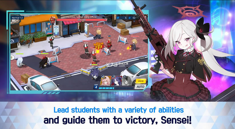 这款游戏的第一个亮点无疑是视觉上的做工。这是另一款具有动漫风格图形和可爱学生角色设计的游戏。美术很好,动画也很好玩,如果你觉得2D美术,女孩们很漂亮,战斗中女孩们的3D赤壁风格的作品做得很好。比较漂亮可爱,个人比较喜欢打3D的,非常过瘾。
