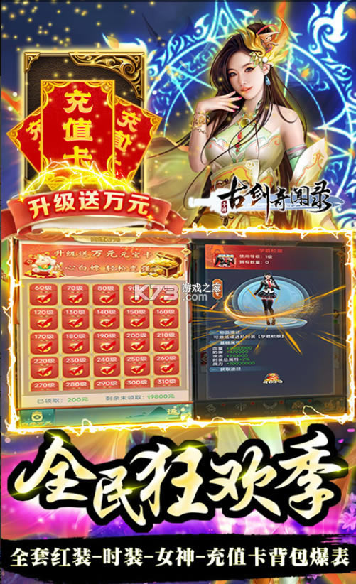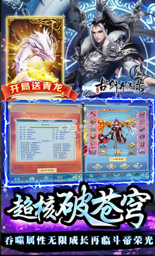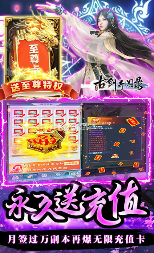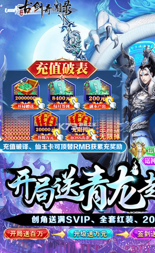 《古剑奇闻录》领全套红装开局送青龙和极品的称号,以及华丽的翅膀,击杀boss奖励无限领,提升战力属性免费领各种奖励,送神兵仙剑,吞噬属性打造全新荣光,永久送充值无限充值卡,快速爆表乐趣无限。