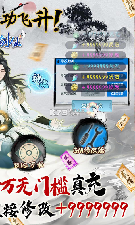 《九天剑仙》是一款集卡牌玩法于一身的文字修仙手游,上线输入GM999即可解锁每日无限制万抽资源!免费点充工具,真充直接靠手速点!还有植入GM修改器,每日拿海量资源直接助力飞升!