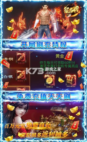 上线激活gm特权,快速开启gm商城,绝版时装海量材料无限领取!BOSS爆率全部上调1000%,无限爆真充,福利拉满在线打金!每日领取gm指令,无限领取金币元宝真充卡!快邀请兄弟齐聚沙城,称霸全服!