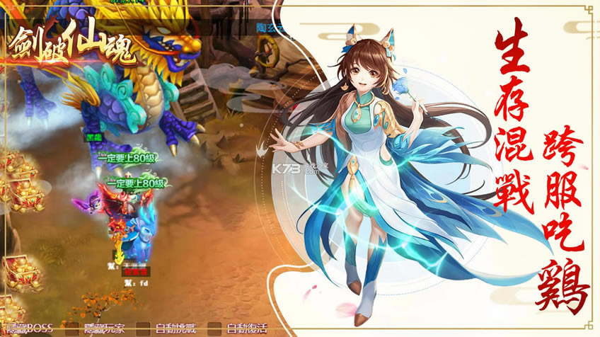 多种不同的元素组合和简单的操作方式,让你快速上手,体验身临其境的游戏。游戏中的大量副本等你解锁。跟随主线剧情,你在不断的战斗,展现出巨大的战斗力。和你的伙伴战斗。喜欢这个游戏就不要错过。剑斩仙魂的玩法轻松简单,给各位玩家展现了一个充满奇幻色彩的世界,玩家知己相互竞技和战斗,用实力来证明自己的强大,称霸游戏世界。不断的探索秘境,寻找位置的谜题。还有机会找到绝世宝物,成为这个世界最强大的人,受到所有人的尊重。