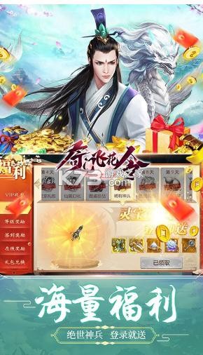 1.每日登录即送仙翼幻化,稀有神兵以及极品灵宠幻化。