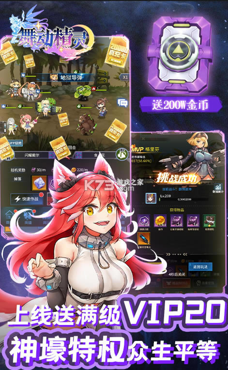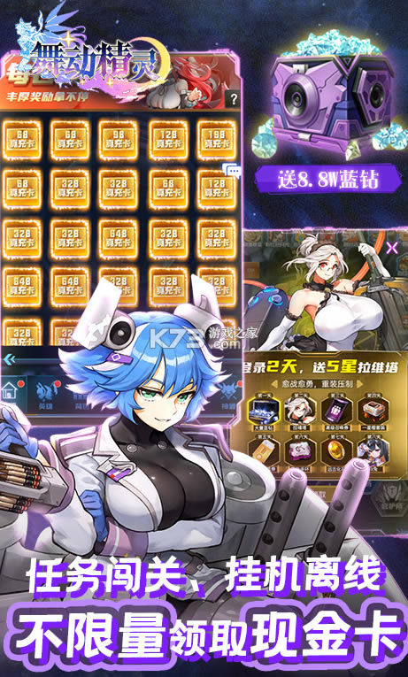 《舞动精灵-真0元刷充》是一款二次元科幻题材的放置卡牌养成类RPG手游。上线直接免费激活刷充科技,不用花一分钱就可以每天白嫖,还能领取88888钻石,20000现金卡,满级vip20让您轻松放置!日漫二次元游戏场景,华丽的对战特效,自由搭配战斗阵容,给您带来耳目一新的游戏体验。