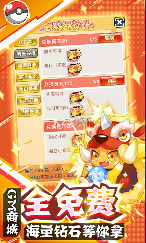 《像素大陆-GM精灵刷充》是一款集宠物收集养成、回合制战斗于一体的冒险手游。开局邮件就领6666充值卡,上线就送满级vip和高战力神宠,同时还有GM修改器,GM余额让你每天免费充充充!