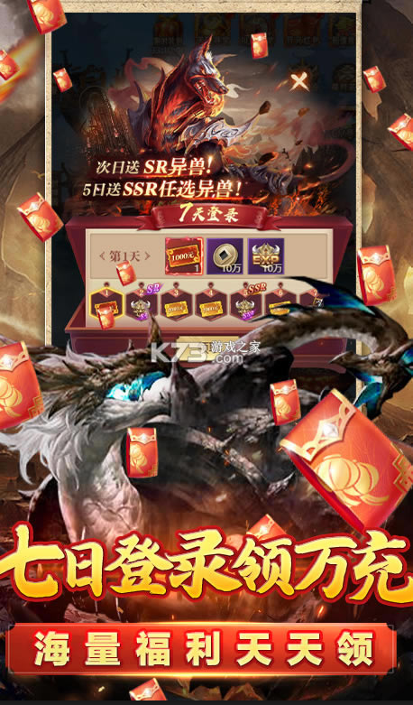 新手礼包:高级孵化蛋*5、金币*250000、异兽经验*100000