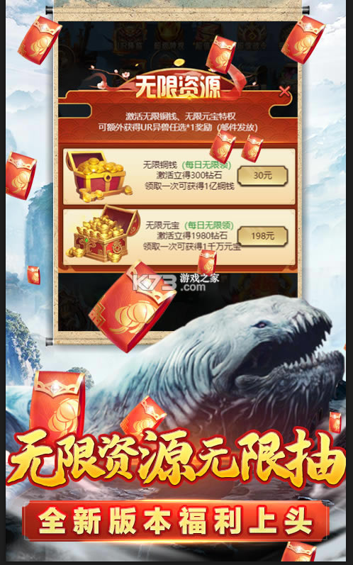 《少年驯龙记》真山海真异兽真福利的游戏平台,打造最强的异兽,闯关就送30抽,送十万真充福利全新版本上头,送1亿元的宝箱,解锁商城奖励抽到手软,应有尽有,还能解锁和兑换更多钻石,奖励抽到手软。