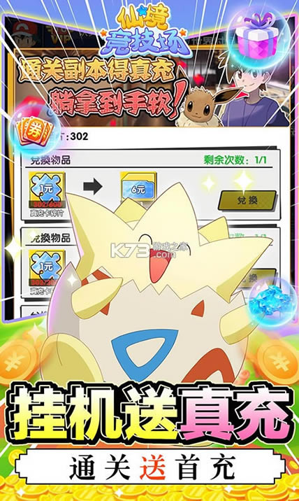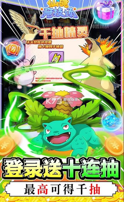 挂机刷本还送无限真充!游戏送千抽扭蛋,各种珍惜小精灵等你来抽,下个欧皇就是你!游戏画面精巧,完美还原特色造型与技能,炫酷的战斗特效。