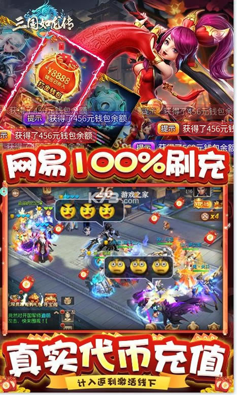 《三国如龙传》上线送万元真充,网易推出的全新的版本,三国名将尽数收集,浪漫的结婚,战斗自由的走位,拥有真实的充值体验感,实现百城十三州的大地图,解锁直充,解锁直购的产品,网易百分百的刷充,真实代币充值,阵容自由搭配。