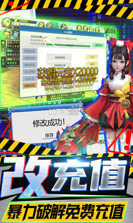 ★后缀说明:开局送GM修改器,通过GM点可以实现免费充值,修改属性,游戏加速等功能