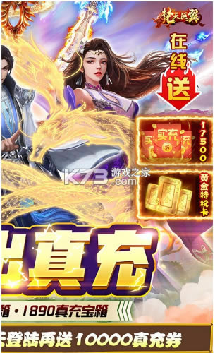 4、充值比例1:1000!上线送满V直升卡,送海量稀有宝箱和1890真充宝箱