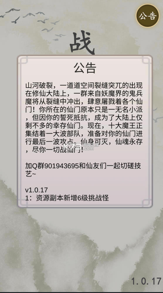 《战仙门》是一款修仙题材的文字模拟养成手游,玩家们需要依靠自己的力量来抵御各种各样妖魔鬼怪的进攻,合理的分配升级属性点可以让你变得更加的强大,海量的功法秘籍可供学习。