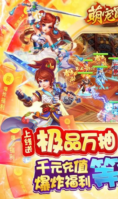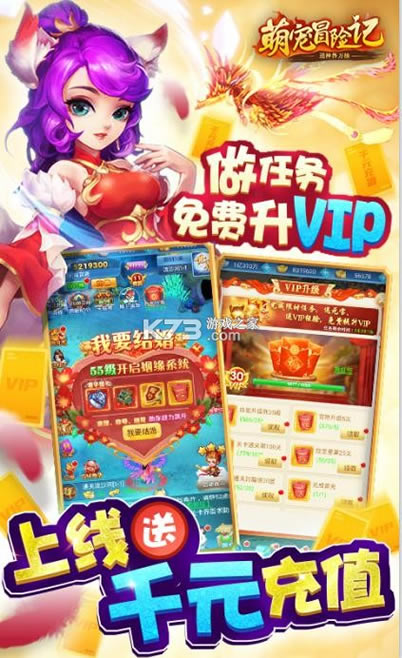 《萌宠冒险记》上线领取千元真充,无敌的爽快感,绝版的时装来袭,炫酷的神装全部都有,无限白嫖,元宝全靠你来拿,让你实力爆棚,在线1小时免费抽奖,送线下充值返利,福利不断在这里买到就是赚到,福利多不容错过。