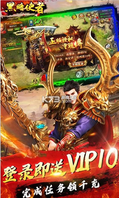 《黑暗使者》战法道三大职业,装备尽情的爆福利超级多,畅快的战斗体验感,拒绝打金和挂机的玩法,激情成长的全新篇章,首充解锁神兵屠龙,累积送福利和极品装备,创造你的绝世仙宗,每一次登录都是新的篇章。