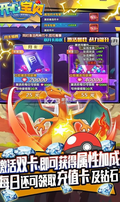 6、25元激活月卡,立刻获得20000钻石,每日领取30元充值卡,8000钻石。