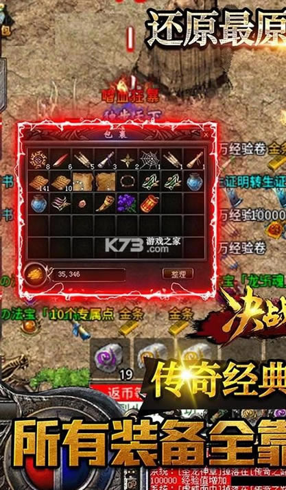 屠龙、裁决、八大特戒、骷髅法杖等经典装备自由掉落,汇集了顶级玛法大陆史诗公会,千万玩家热血激战争霸,重回经典复古传奇的热血和恢弘