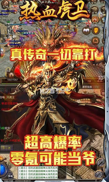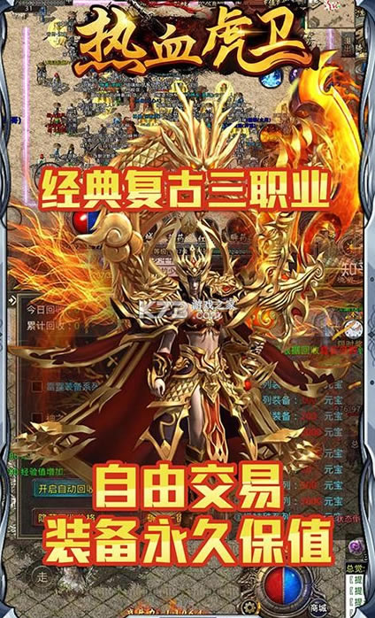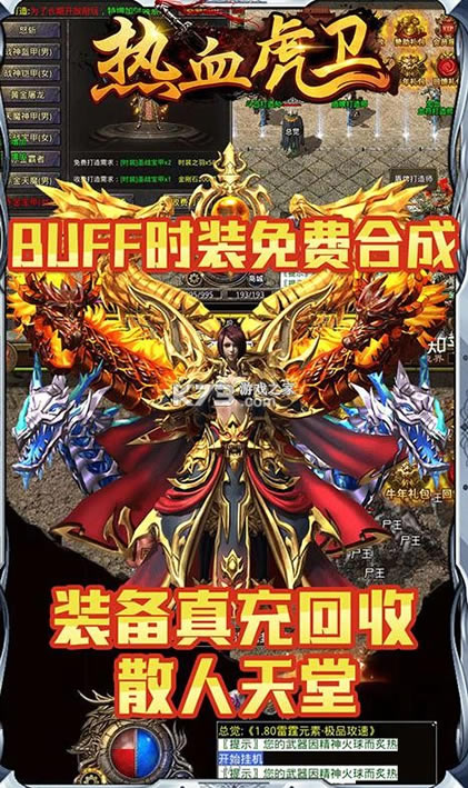 《热血虎卫》散人的天堂自由的交易,赠送礼包和宝石,重返玛法的游戏世界中,微变三职业的玩法,超高的爆率登录就送,永久保值,时装免费打造,配套超强的buff,时装免费的合成,真传奇一切都靠打。