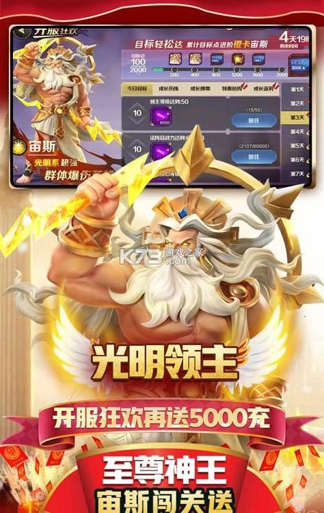 ★开服狂欢送5000元充值卡,登录再送5000元。闯关还送神王宙斯