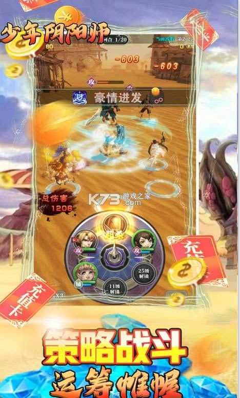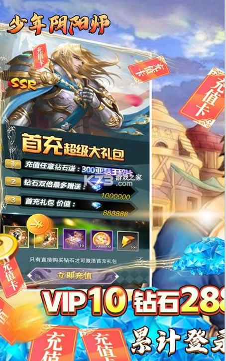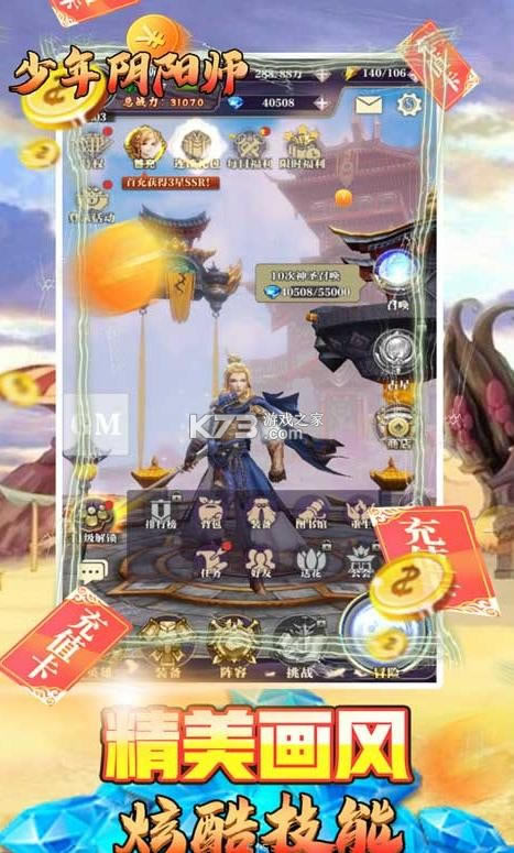 《少年阴阳师式神之战》登录上线领万元充值版,送顶级英雄随便抽更多的福利,精美的画面炫酷的游戏特效拥有全新的选择和玩法,上线送万元真充的福利,尽情的畅玩,玩家们别错过。