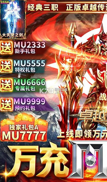 《卓越传说-万充MU神显》还原经典魔幻世界!战法弓三大职业任君选择,快化身救世勇者,书写你的传说! 【游戏福利】 做任务得MU神显,闯关、挂机、打boss狂送充值卡,华丽翅膀、炫酷神魔、强力佣兵在线即得! 【游戏特色】 玩法简单易上手,福利满满享不停! 在线PK刷Boss,离线照样能升级! 多种跨服玩法,自我突破永无止境! 三大职业风格迥异,技能炫酷秀翻全场!