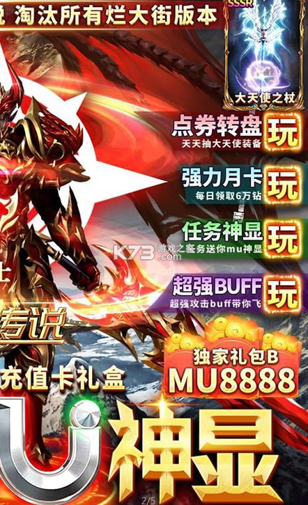 ★上线即领万元充值卡礼盒,88888钻石,8888888金币,秒升VIP10,达成任务送你mu神显,闯关送满级VIP,开服欧皇转盘天天抽真充!
