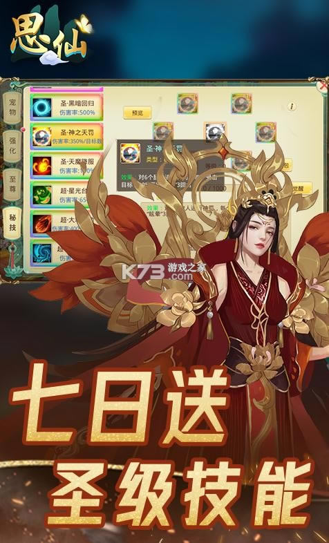 《思仙》是一款经典回合制BT手游,更高的等级,更强的伤害带给你最爽的战斗体验。比传统回合制更加强大的宠物,摒弃复杂的宠物合成,普通宠物都可以拥有15技能,更有逆天宠物神技,带你体验不一样的宠物养成
