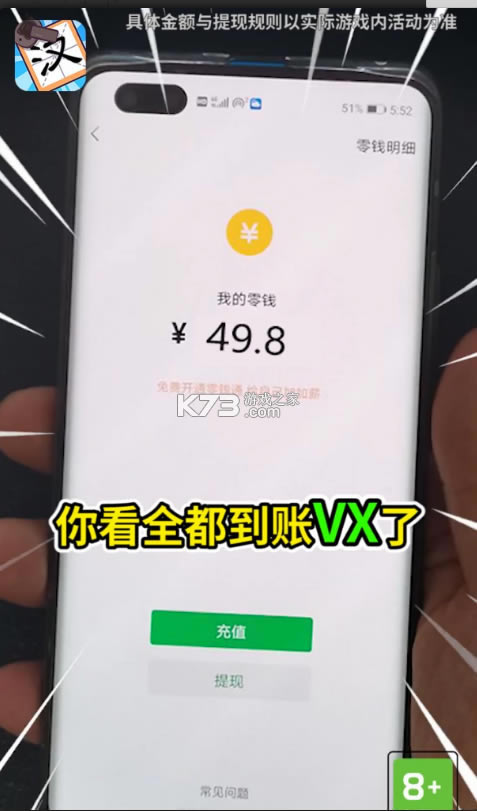 《有趣的汉字红包版》这是一款最近在快手上特别火爆的汉字闯关赚钱游戏,玩家要通过在提供的汉字上添一笔画必成另一个字,考验了玩家汉字储备量,也体现了汉字文化的博大精深,完成闯关可以领取丰厚的红包。
