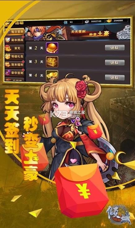 ★每日签到:海量铜币、海量体力丹、橙色宝物箱、海量材料等;