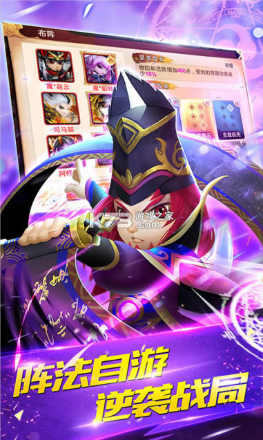 Q版卡通画风的回合制卡牌对战类游戏。不仅不让玩家有强烈的依靠充值解决问题的能力,还鼓励每一位玩家都可以根据自己初始选择的套路来一直走到最后。无论是自己个人闯关还是与好友一同开黑对战你的每一个选择都不会影响游戏中的整体进度。在出牌放技能的时候,还有动感的特效威震八方,让你的武将在手机上尽显魅力!