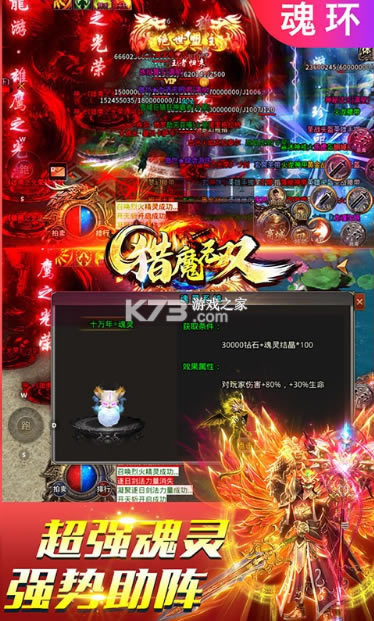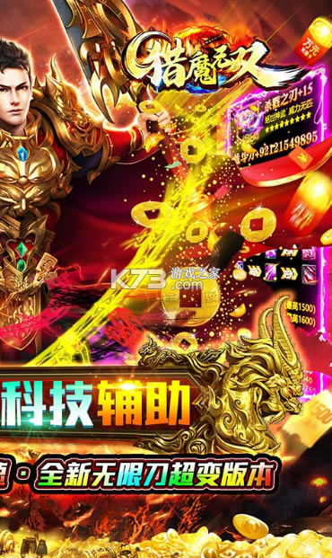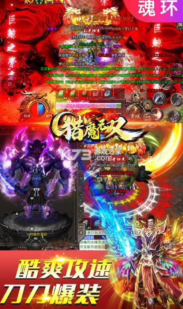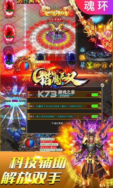 【猎魔无双(魂环科技刀)】是一款超攻速的魂环无限刀复古传奇游戏。游戏内独创特色魂环系统、魂灵系统、魂导器系统将带给你强大的属性提升,炫酷特效,超级攻速,体验经典传奇的同时也将带给您全新的视觉感官体验。游戏内设置有科技辅助功能,解放双手打怪爆装快人一步。遥忆昔日传奇梦,剑影刀光杀气浓,即刻开启专属于您的传奇之路!