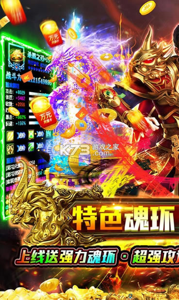 ★简单耐玩,特色魂环系统、魂灵系统、魂导器系统将带给你强大的属性提升,打怪爆装快人一步;