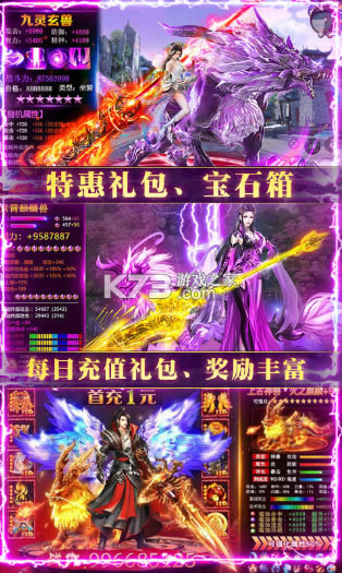3.充值比例1:2000,首充有一次机会获取5倍仙晶返利,首充即送神装,极品仙诀,超级时装,强力灵宠以及海量道具体力。