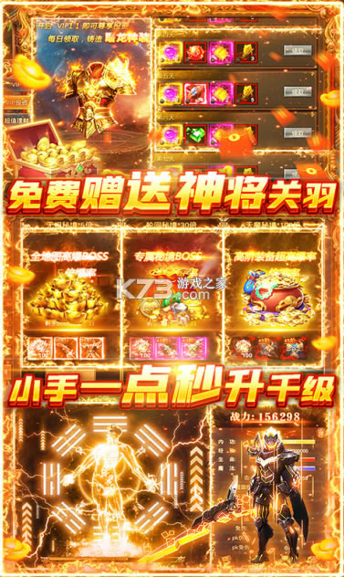 ★做主线送神将关羽,极速升千级,免费签到送超级装备和宝藏钥匙!