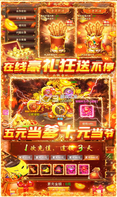 单日累计充值返利(返利次日自动发放,道具需要申请)