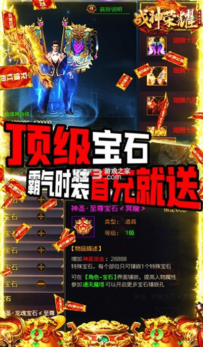 首发礼包(zsry888):50000元宝*10、羽毛*300、神石*10