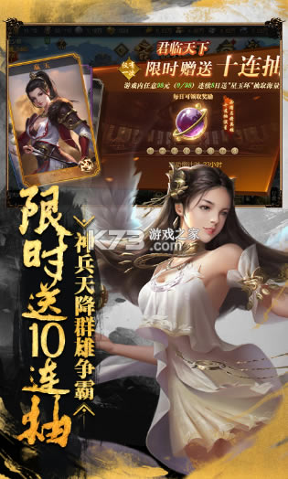 2021年顶尖策略手游《烽火燎原(九州缥缈录)》登录送名将姬野,限时赠10连抽,还有双倍元宝返利,九州烽烟将起,群雄共谋天下。九州大陆谁主沉浮,与天下名将共赴沙场,执笔书写九州春秋,征战一段热血与羁绊并存的战斗。抛却退路,一往无前,不负铁甲之名! 神秘遗迹惊现九州大陆,天下英豪群起而攻,神兵天降群雄争霸,四方风起九州云变!