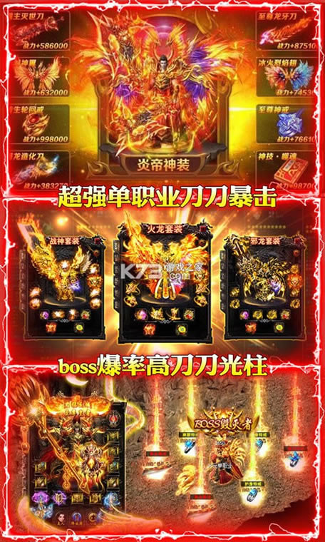 ★首冲大礼送绝版神兵和超强超酷技能、boss什么的随便打随便刷,百倍爆率,装备随便掉;