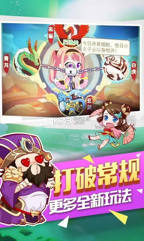 《三国闪萌将版》是一款二次元萌系风格三国卡牌游戏。以古代三国为背景融入西游记等中国神话,使人、神、魔汇聚一堂!
