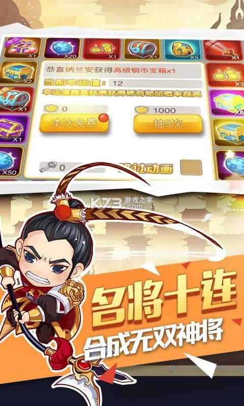 游戏玩法丰富多彩,武将技能华丽酷炫,游戏剧情诙谐逗趣。收集三国名将,征战闯关,刷三国BOSS,叫上兄弟一起攻城略地打国战。