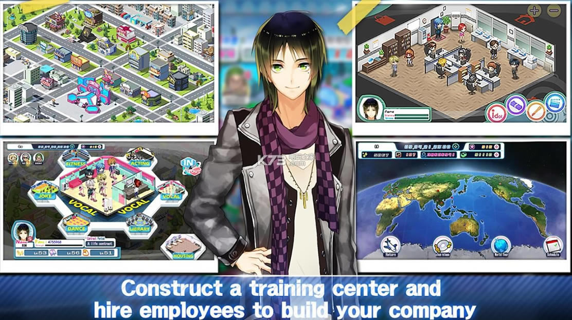随着您的偶像和公司的成长,通过改善建筑物和雇用不同的培训师,通过不同的投资来帮助您的公司成长。