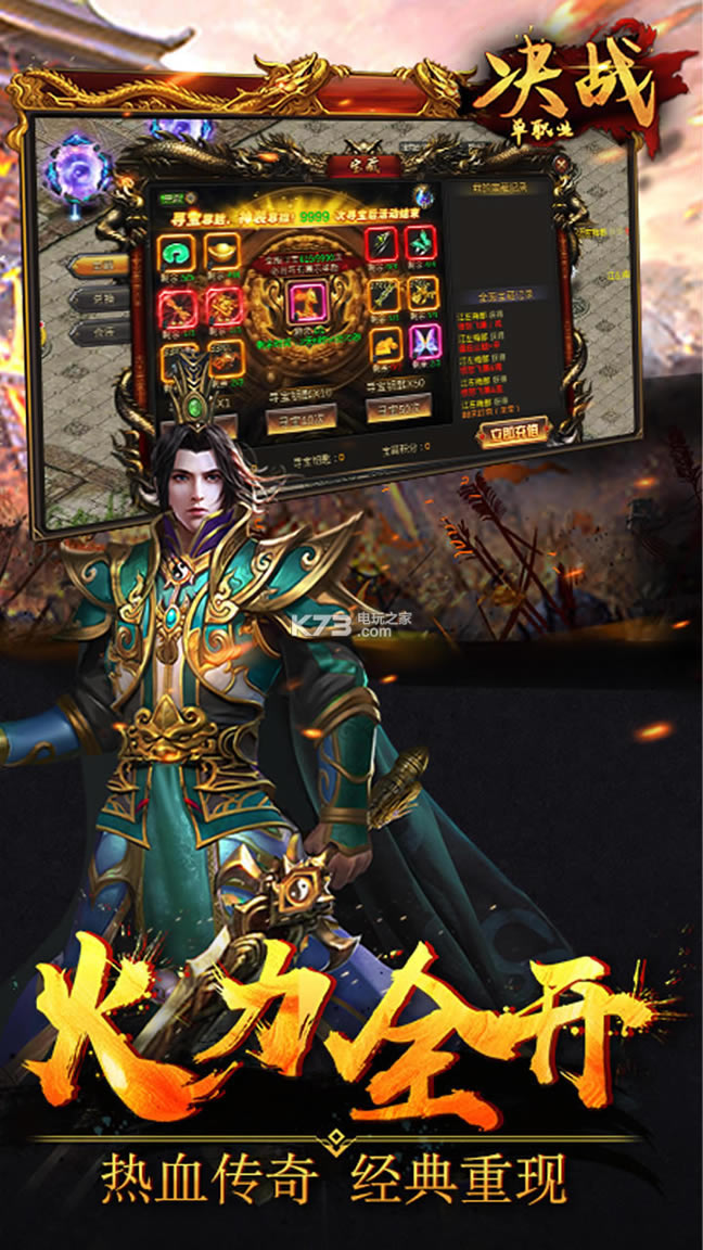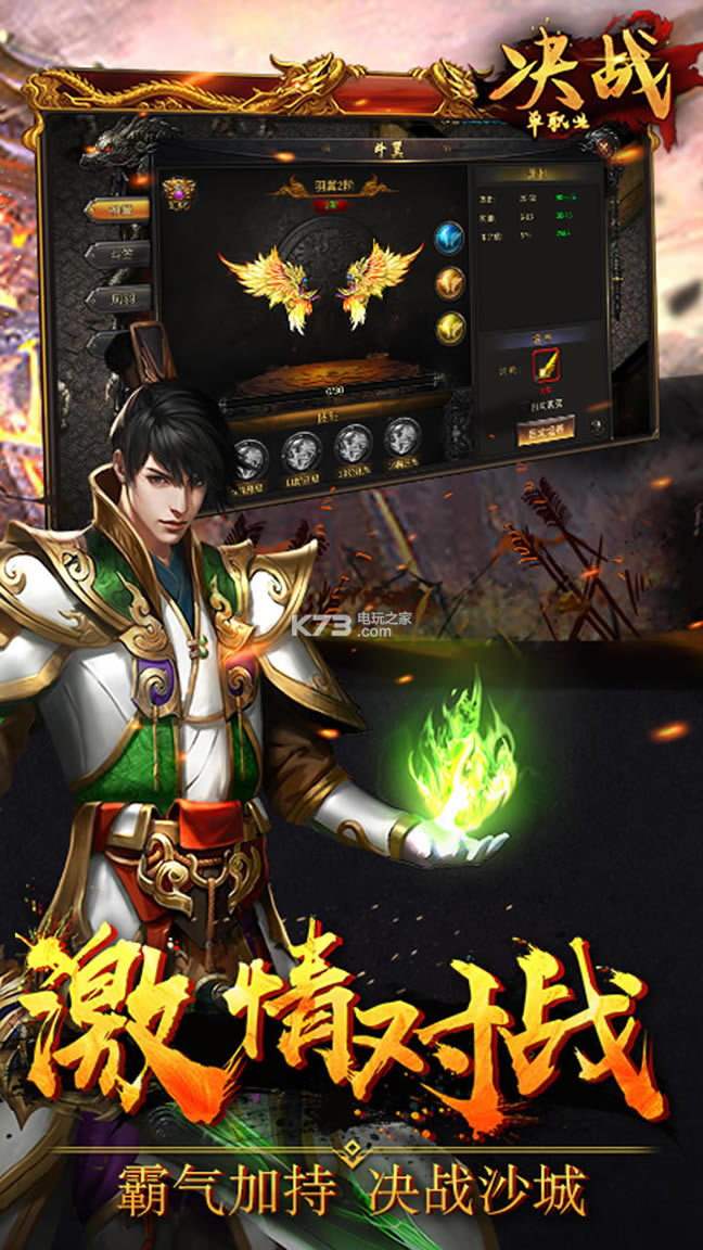 官方正版传奇《决战单职业》震撼来袭!经典版本,热血攻杀。全新单职业玩法,VIP12免费送,装备可回收。游戏拥有战宠召唤、激斗BOSS爆神装、转生神翼、万人攻城等开放式玩法,迅速激起你的青春回忆!还等什么?快来和兄弟一起,一刀破晓,重铸霸业!沙城霸主已经归来,玛法大陆风云在线,你,还在等什什么........