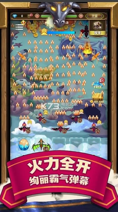 这是一款以龙族射击为主题的合成放置塔防游戏。在这个魔幻世界中,您可以合成并升级全新的飞龙,歼灭侵略者,赚取更多的金币,壮大自己的飞龙军团!