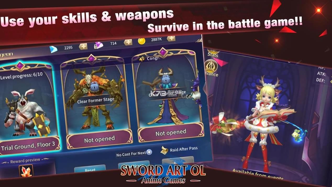 《剑术动漫(Sword Art Anime Games)》最壮观的动漫的游戏,和喜爱的角色来一起对抗敌人,参加节目和舞会以及完成各种各样的人物,扩大收藏的范围训练更多的怪物。