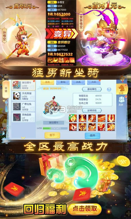 终于等到你,2020浪漫经典回合制手游《跑跑西游》今日上线,登录就送38888水玉以及百万银币,各种无限特权让你大呼过瘾!全新酷炫时装翅膀、缤纷炫彩坐骑、更有爆款新宠物萌动来袭,伴你闯荡驰聘三界!