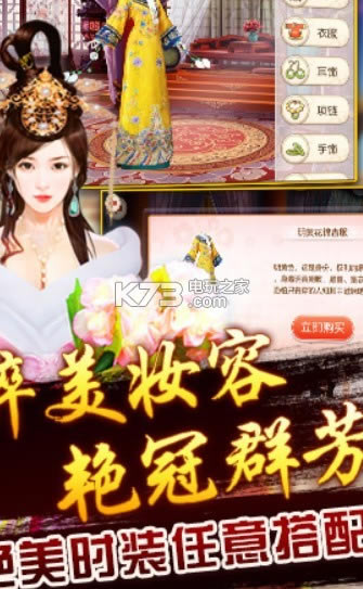 特色DIY装扮,华美的后宫,绝色的佳人亲手装扮。游戏内各种古风唯美的服饰可供选择。