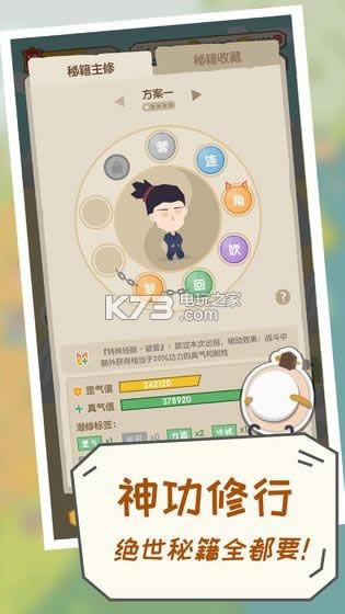 《掌门别挂机》是个Q版武侠挂机游戏,你成为门派掌门人,掌门别挂机游戏由你来选择发展路线,并且还能参加武林大会来提高威望,招收更多子弟壮大门派。