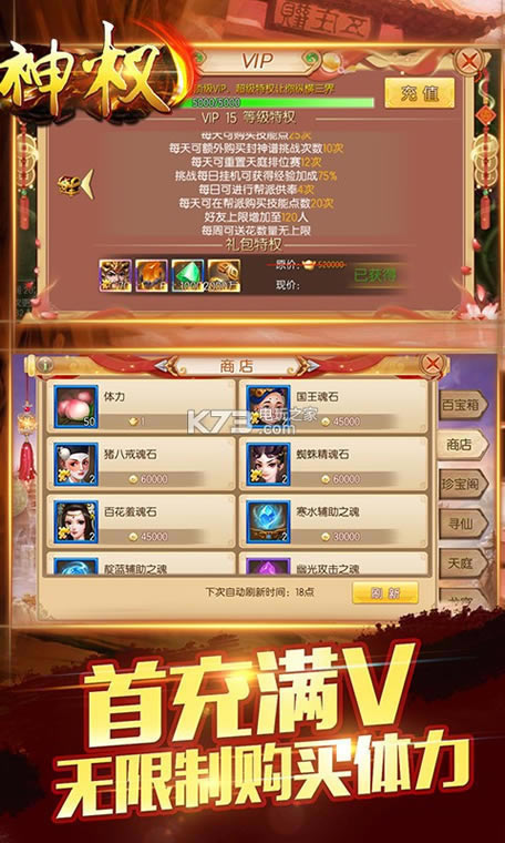 ★商场1元宝,无线购买体力~体验前所未有的一天满级!