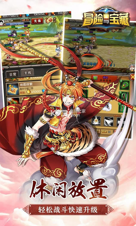 《冒险与宝藏》是一款西游题材全新放置类手游,全新放置玩法。西行路漫漫,文体两开花。为了帮助大家在游戏中一路披荆斩棘,我们特意安排了诸多活动豪礼相赠~ 在游戏中,你能看到孙悟空有多少女妖朋友,各个神仙大妖的另一个面孔!
