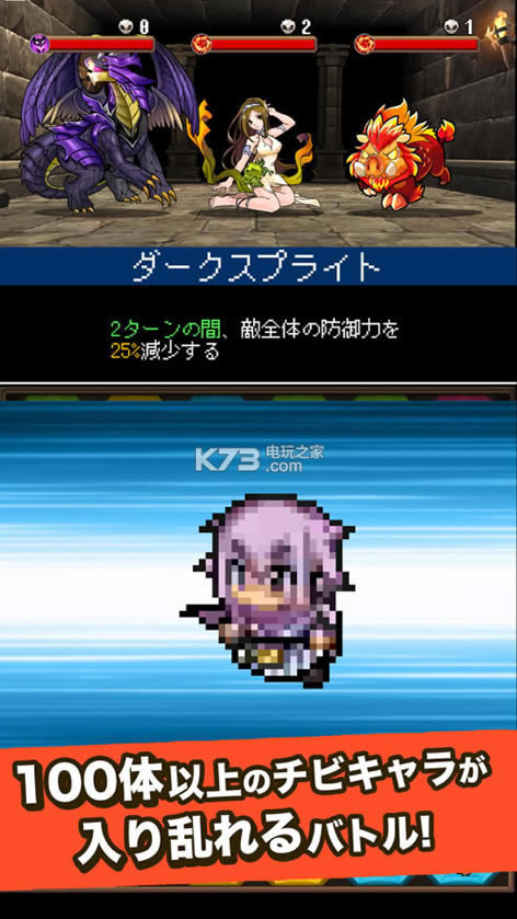 《无限连锁》有着日式Q版像素风格,在幻想世界中通过消除的方式收集怪物以及进行战斗,无限连锁手游可以对怪兽进行合成升级,获得更强能力和技能,在关卡中击败boss。