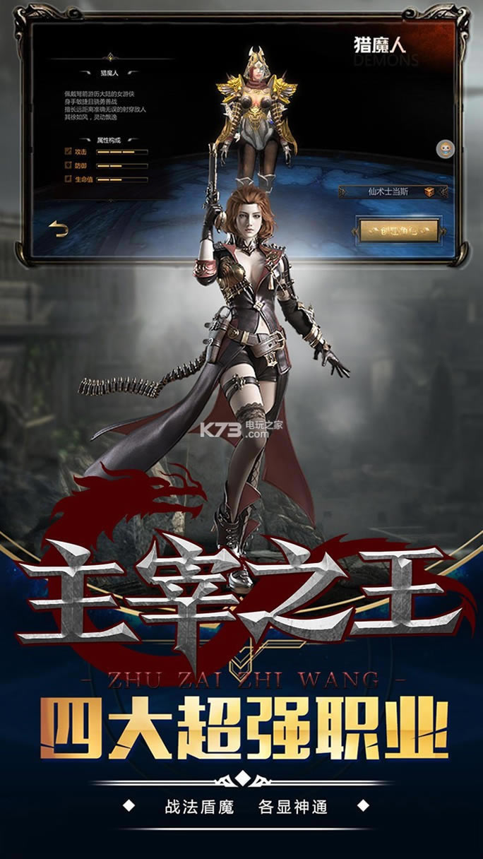 主宰之王手游是一款魔幻题材的RPG战斗手游。酷炫的时装造型,黑暗华丽套装,绚烂惊奇羽翼,带您体验前所未有的魔幻世界。即时战斗的野外战斗,带来激情热血的战斗体验!精致逼真的暗黑画面,多种独具特色的玩法,带你登顶最强王者,畅享极致战斗。不同的卷轴任务,邂逅天使女神,丰富多样的系统斩杀各种弄地狱魔鬼。可爱威猛的萌宠,霸气威武的坐骑亦将与你去征战魔幻世界。
