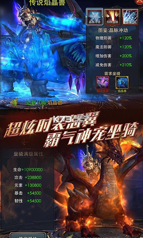 ★登录奖励豪华升级,极品7阶武器、超强怒翼“猎杀之翼”“熔魔之翼”、炫酷坐骑“锁链狂兽”登录即可免费领取